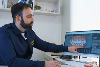 Depois que fizermos o seu escaneamento digital 3D na primeira consulta, faremos o planejamento digital personalizado do seu tratamento tendo o cuidado de nāo realizar movimentos com o implante, somente dos dentes próximos a ele.